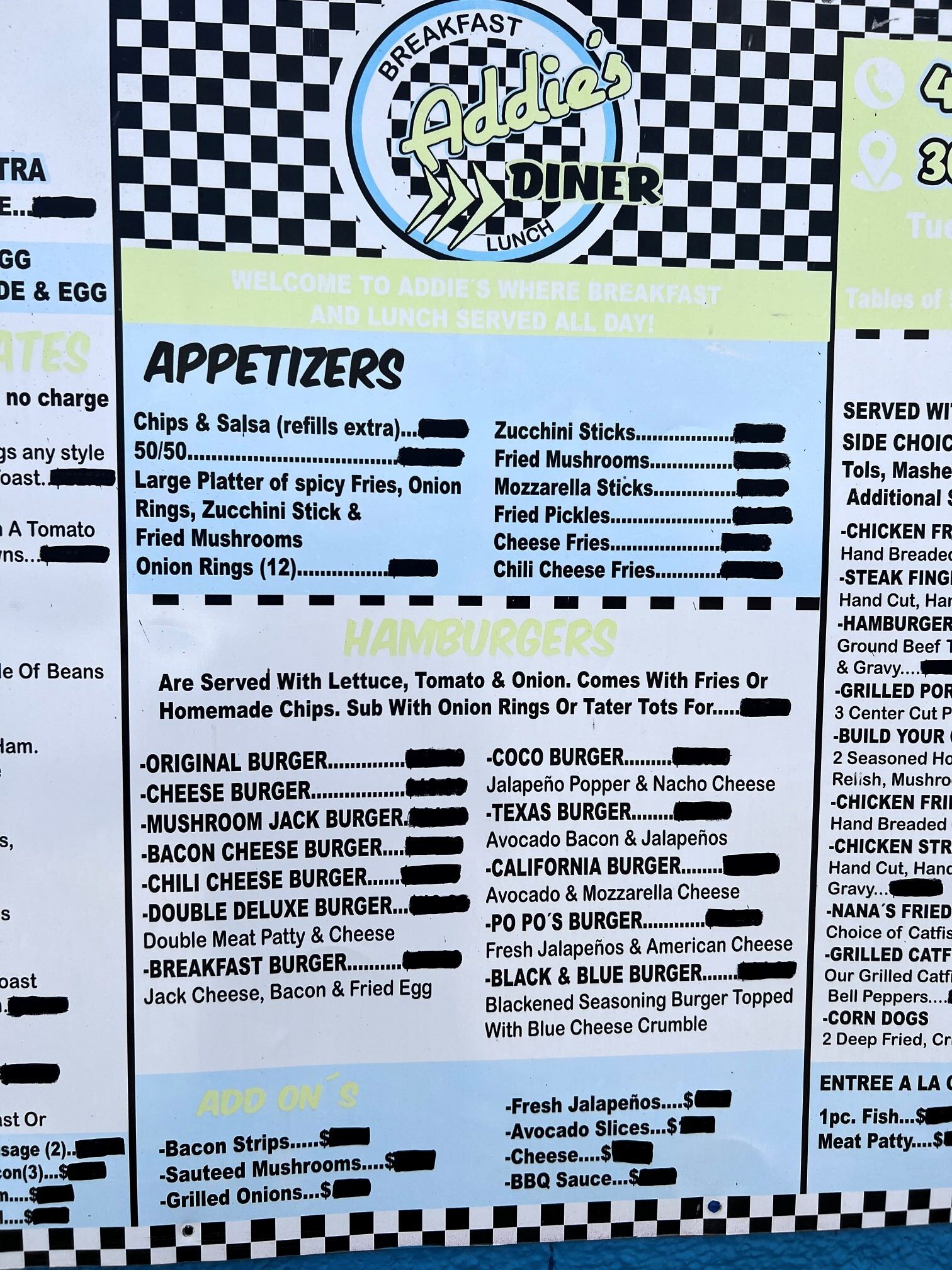 View Addie’s Diner’s Menu below