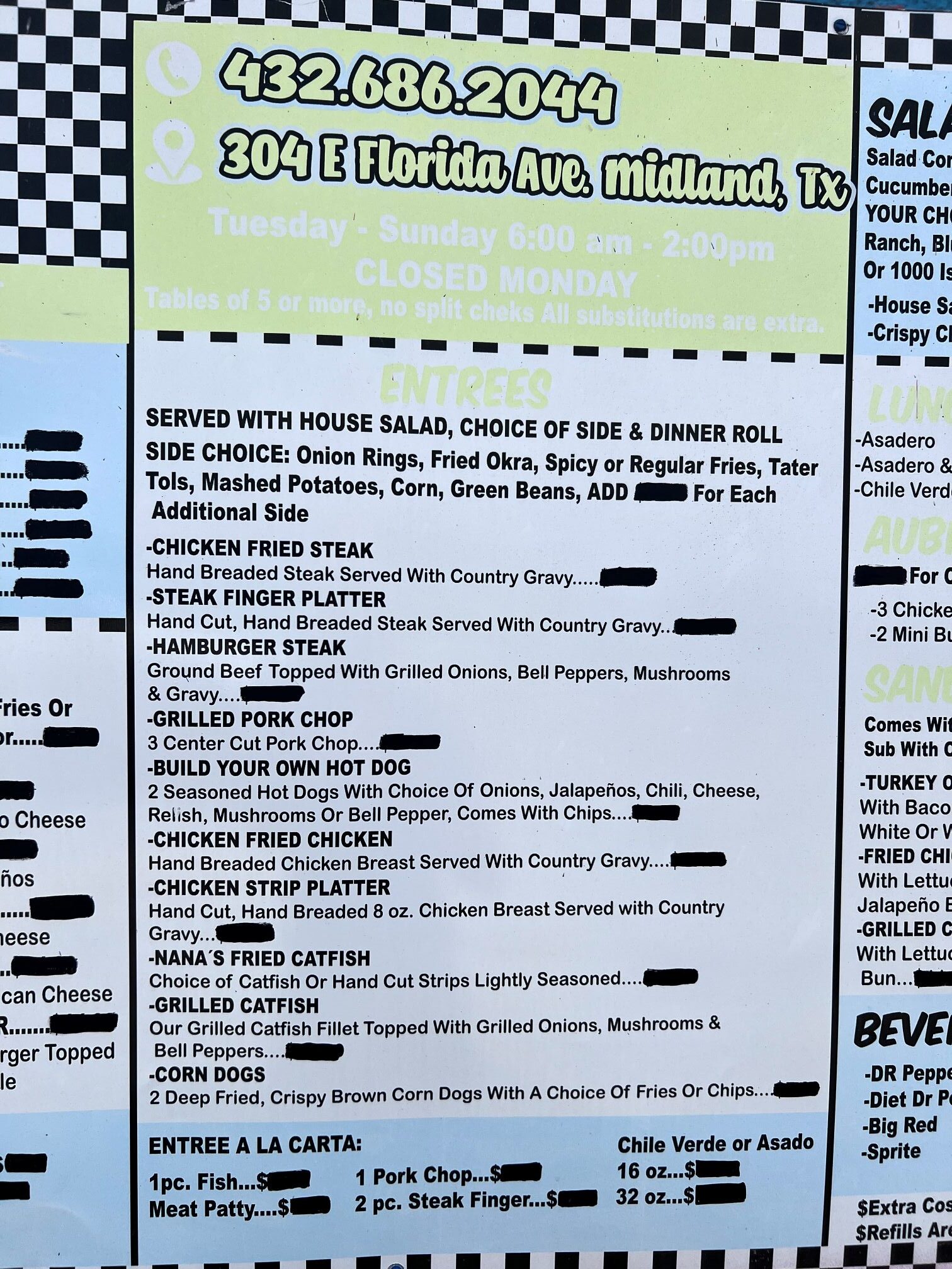 Addie’s Diner opens its doors early: Tuesdays through Fridays at 6 AM (shifting to 7 AM on weekends), and stays busy until the early afternoon—perfect for everything from an early-morning power breakfast to a late-morning catch-up over eggs. Closed on Mondays, it’s become a weekend ritual for families, shift workers, and travelers alike. So why not pull up a stool, dial (432) 686-2044 for questions or reservations, and experience a slice of Americana right here in Midland?