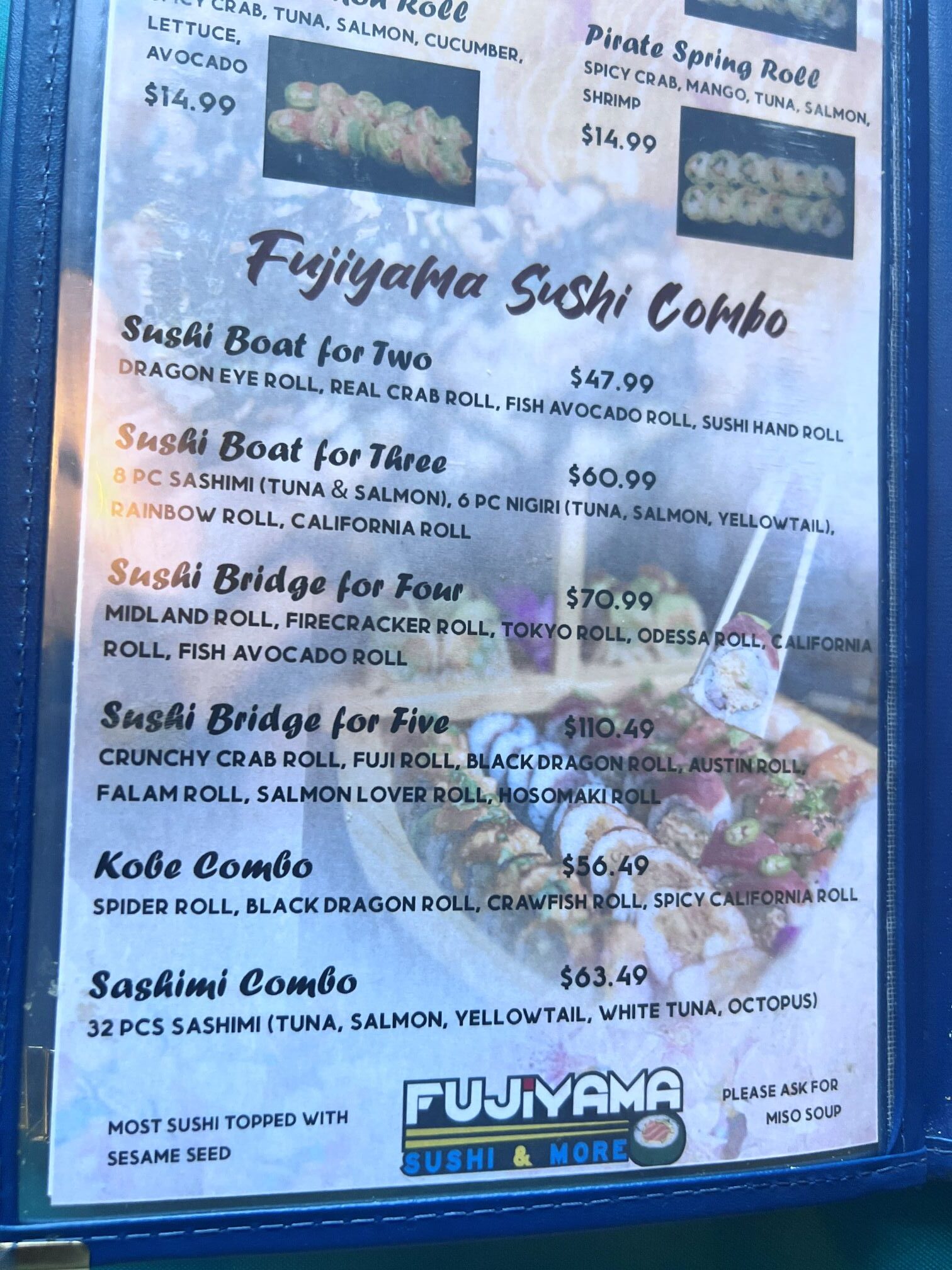 Open Monday through Saturday (hours vary slightly by day), Fujiyama makes it easy to satisfy your sushi fix. From the friendly staff to the clean, low-key setting, it’s a place where regulars feel at home and newcomers are always welcomed. For more info or to browse the menu, visit fujiyamasushi.net or call (432) 599-4768 to place an order. Whether you dine in or take out, Fujiyama delivers on flavor, service, and simplicity.