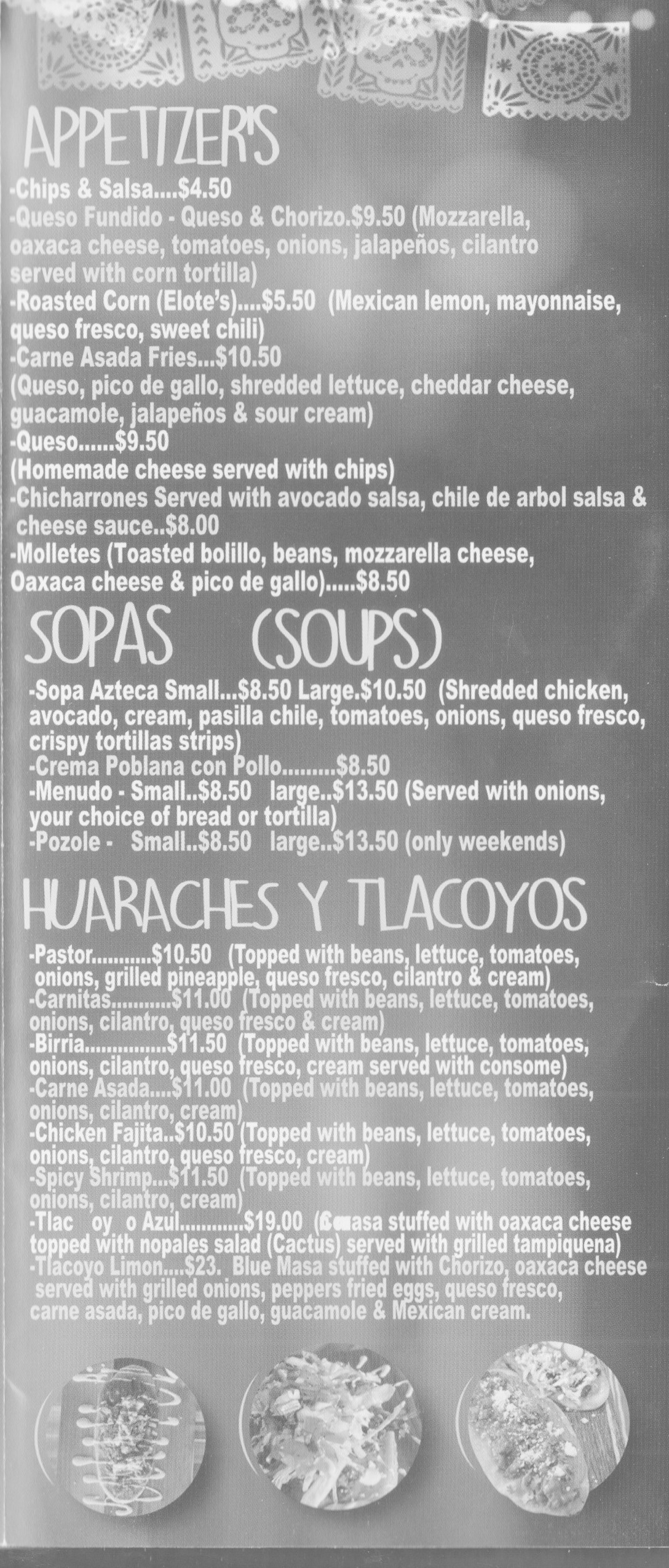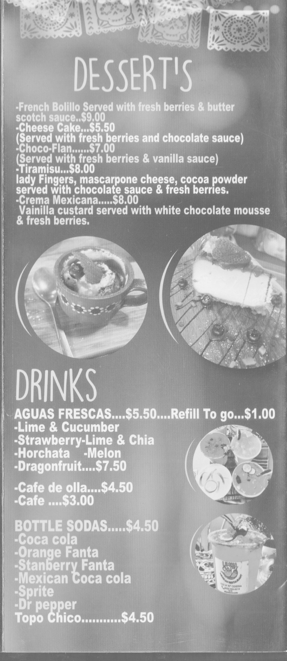 Rounding out the feast, the kitchen stocks an impressive small‑plates lineup—queso fundido with chorizo ($9.50), chicharrones with avocado‑árbol salsas ($8), and a rotating sopa Azteca or pozole on weekends—plus a desserts section where you’ll find everything from French bolillo with berries and butterscotch ($9) to house‑made choco‑flan ($7). Pair it all with a fresh agua fresca—strawberry‑lime & chia, melon, or dragonfruit ($7.50)—or a café de olla ($4.50), and you’ve got a midday haven that celebrates the bold, vibrant flavors of Mexico without breaking the bank.