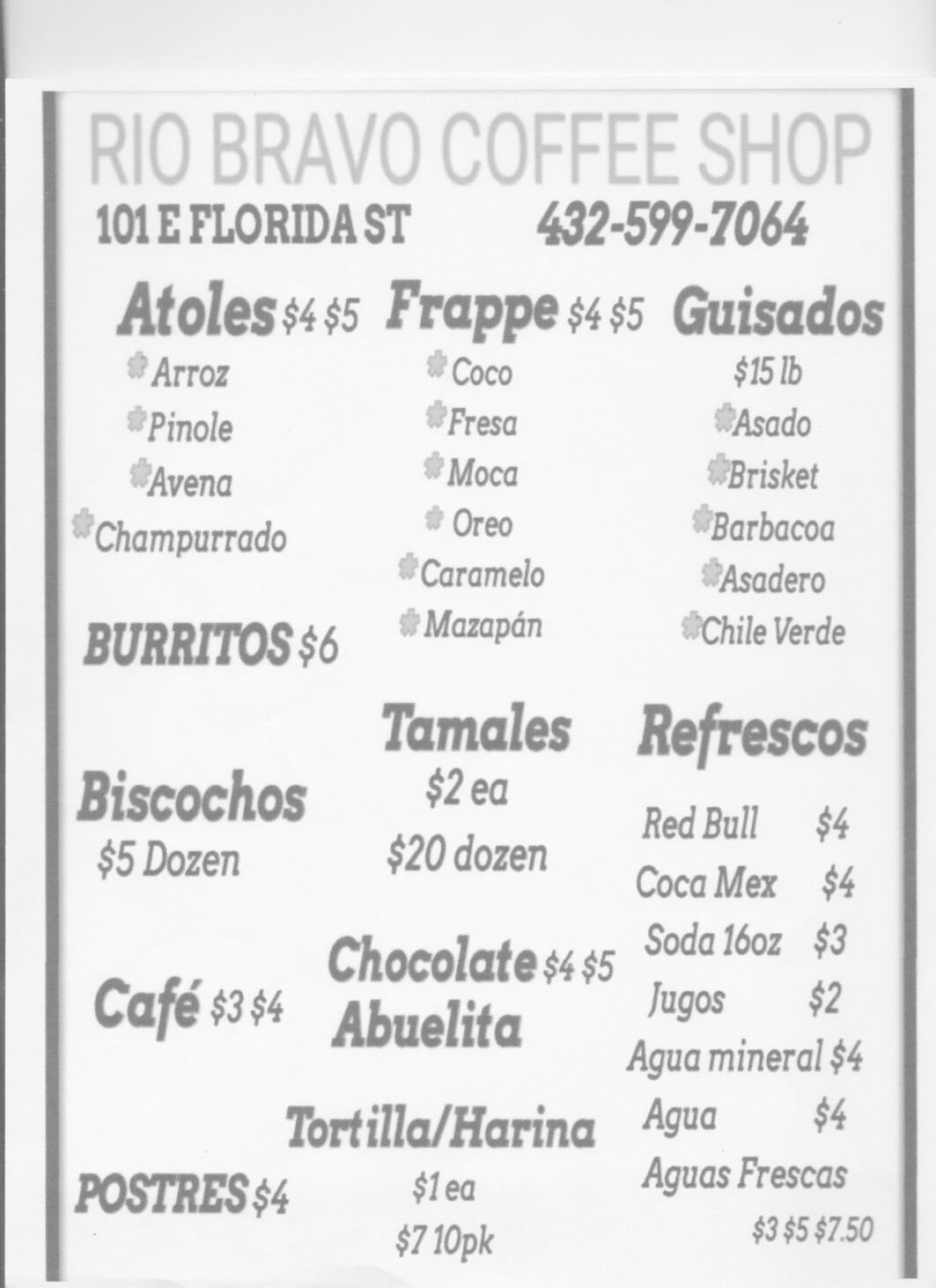 View Rio Bravo Coffee Shop’s Menu Below