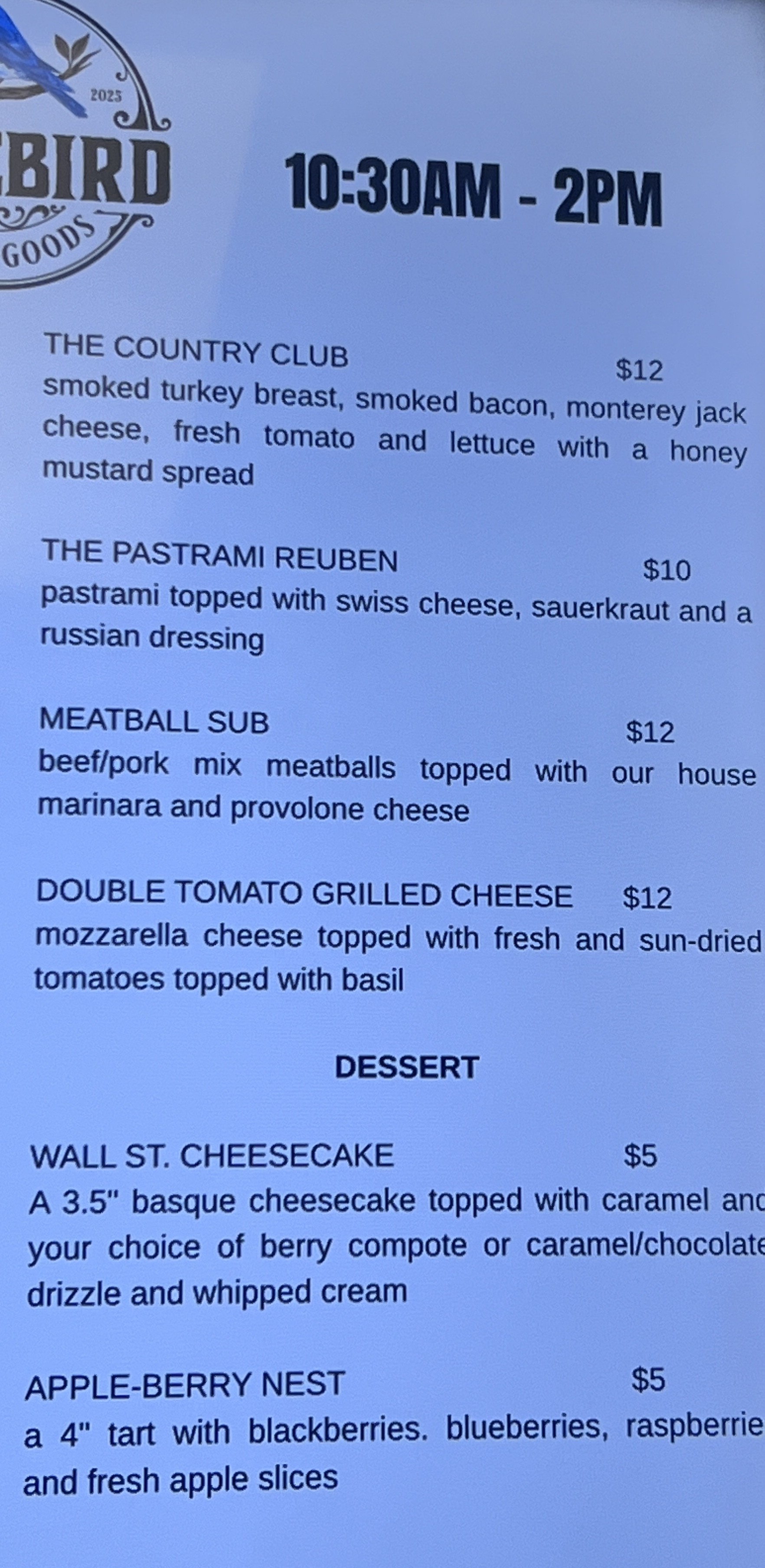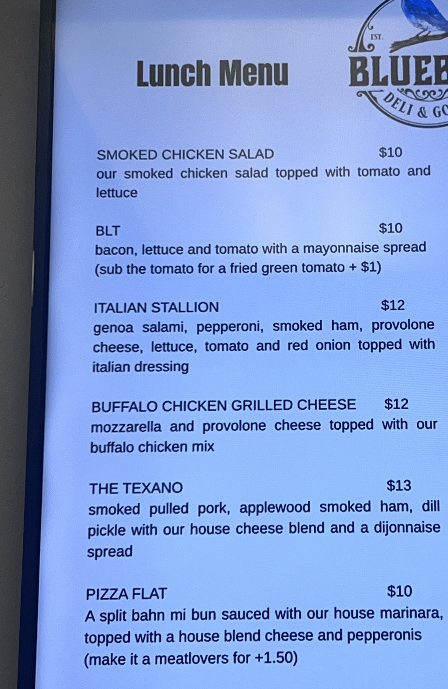 View Bluebird Deli & Goods’s Menu below