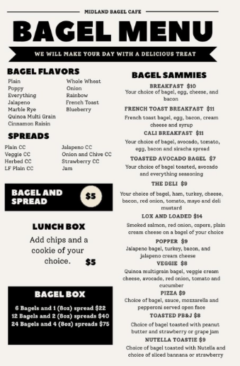 View Midland Bagel Company’s Menu Below
