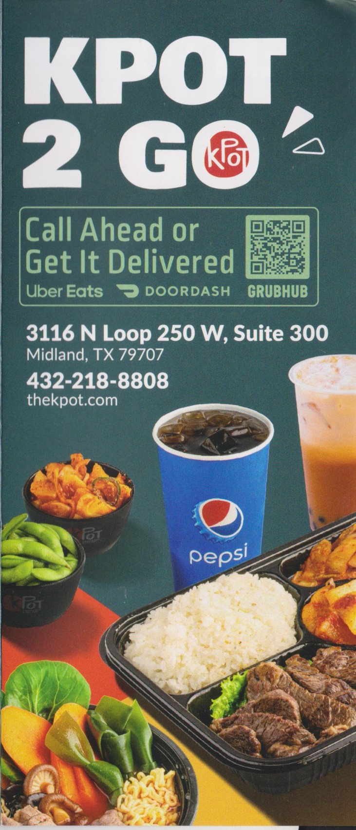 KPOT also caters to takeout and delivery through Uber Eats, DoorDash, and Grubhub, making it easy to enjoy their flavors at home. For drinks, guests can choose from a variety of bubble teas, sodas, or upgrade to combo meals with soup and sides. Generous “Feed the Fam” packages are available, perfect for sharing, with options for two to six people. Whether you’re craving a quick bento lunch, a DIY hot pot dinner, or a large family feast, KPOT delivers bold flavors, plenty of variety, and a fun dining experience in Midland.
